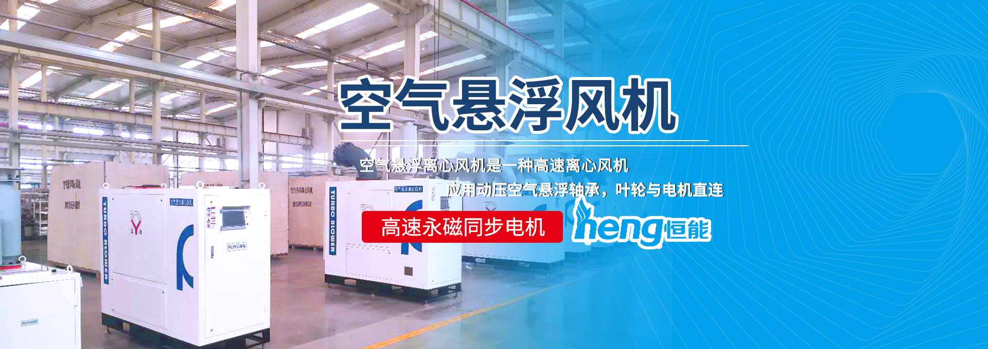 山東恒能環(huán)保能源設(shè)備有限公司代理的富源牌空氣懸浮離心風(fēng)機是一種高速離心風(fēng)機,應(yīng)用動壓空氣懸浮軸承,葉輪與電機直連,高速永磁同